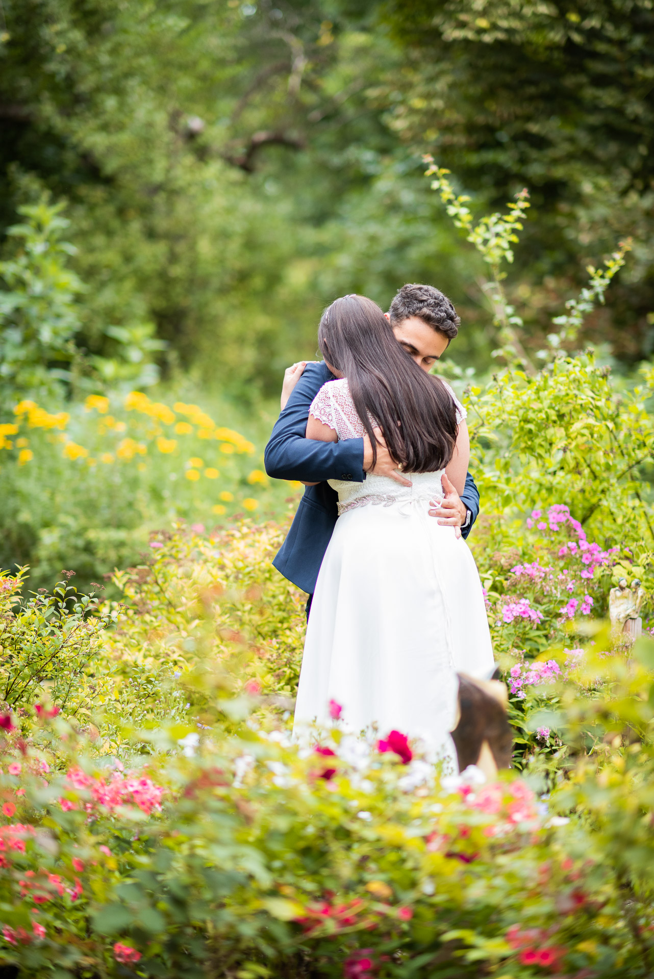 Tussendoor heb ik het bruidspaar even meegenomen voor de bruidsshoot. Naast Eetlokaal Zevenaar is een B&B gevestigd: B&B Huis Sevenaer. De eigenaar kwam naar ons toe: ‘ik heb bij mijn B&B een mooie tuin. Als jullie willen kunnen jullie daar ook foto’s maken?’ En dat hebben we gedaan. Super leuk en wat een mooie plek!